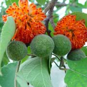 เป็นผลสดแบบมะเดื่อ ทรงกลม สีแดงแสด ขนาด 3-4.5 ซม.