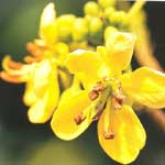สีเหลืองเข้ม ออกเป็นช่อใหญ่แยกแขนงตามปลายกิ่ง